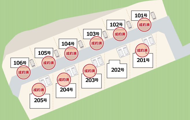 | 駐車場 | 2台/戸(屋根付き) |