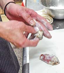 ②に小麦粉を少量まぶし、余分な粉をはたく。