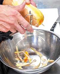 バターナッツカボチャの皮をむく。種を取り、一口大に切る。