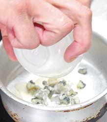 鍋にゴルゴンゾーラと生クリームを入れ、チーズが溶けるまで加熱する。