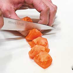 トマトをひと口大に切る。